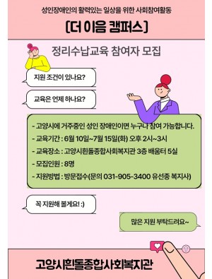 [더 이음 캠퍼스] 정리수납교육 참여자 모집