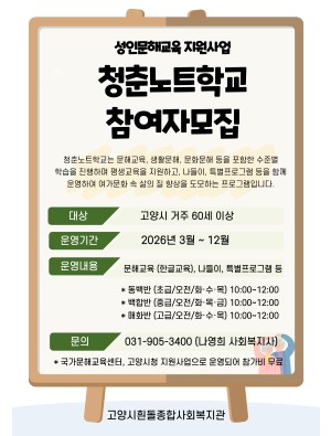 청춘노트학교 참여자 모집 (성인문해교육)