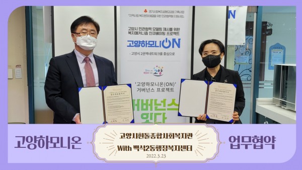 복지관에서 백석2동행정복지센터와 ‘고양하모니온’ 업무 협약을 맺었습니다.