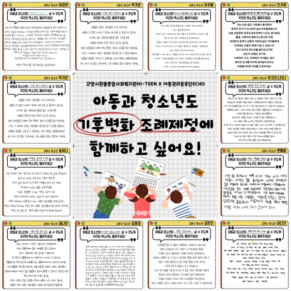 11명의 친구들이 '기후위기'에 관련된 조례를 결정하는 자리에 아동과 청소년들도 함께 할 수 있기를