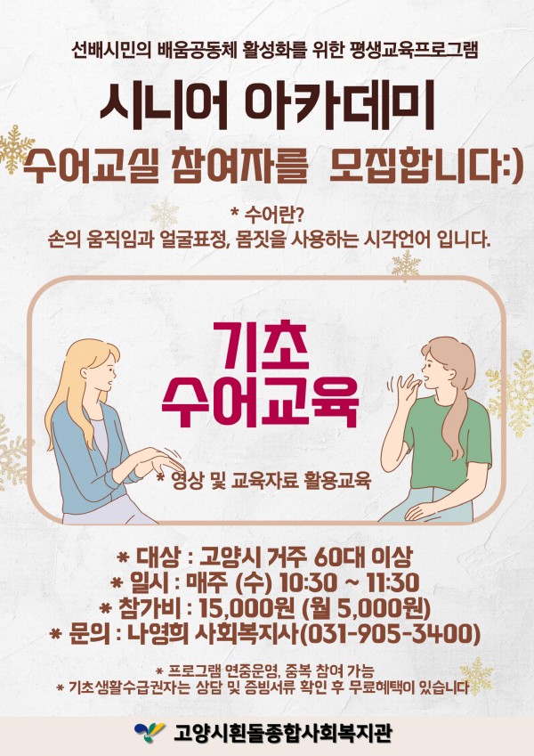 [시니어아카데미] 수어교실 참여자를 모집합니다