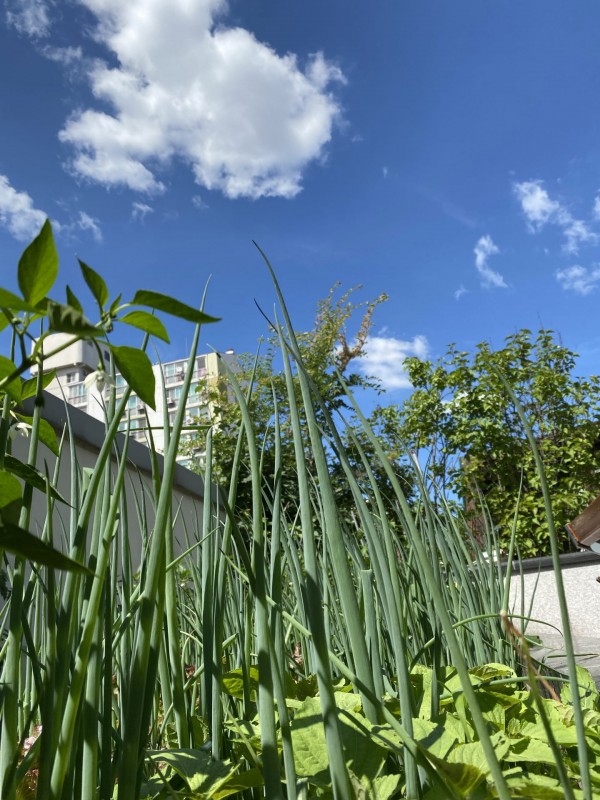 지금 흰돌복지관의 옥상에는 파란 하늘 밑에서 각종 야채들이 무럭무럭 자라고 있어요~