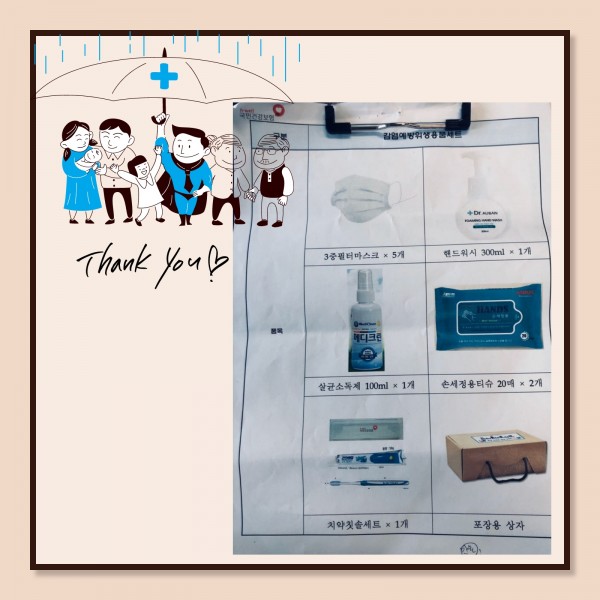 ['코로나-19' 예방물품 뜨끈뜨끈 나눔] 국민건강보험공단에서 나눔키트를 전달해주셨습니다:)