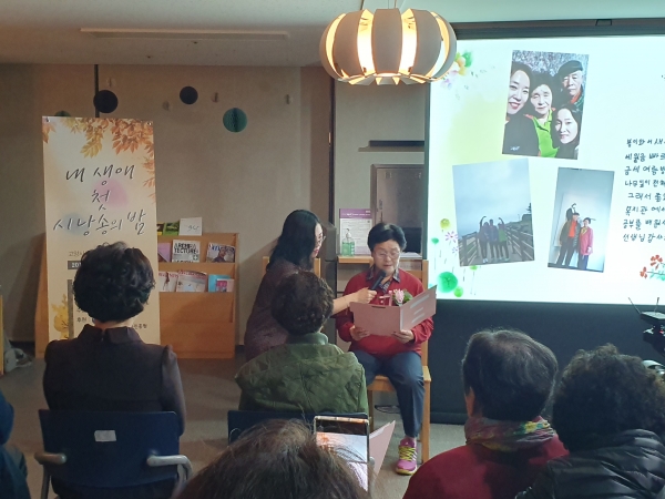 멋지게 시를 쓰신 작가님들이 가족과 친구를 초청하여 발표하는 자리인데요.