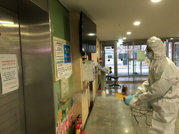 [코로나 확산 예방] 휴관기관 지속되는 방역작업
