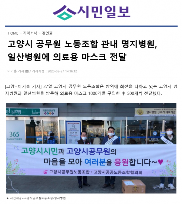 이에 고양시민들도 고양시청에서도 감사한 마음을