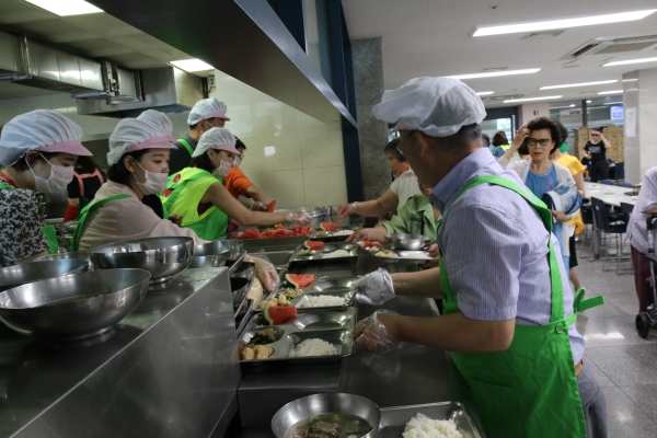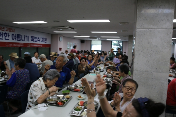 7월3일 이른 아침부터 경로식당에서는 고소한 전부치는 냄새가 진동하였습니다. 무더운 여름 건강하게 잘 보내시라는 의미의 “2018년 고양시 시원한 여름나기” 사업이 진행되었기 때문입니다.