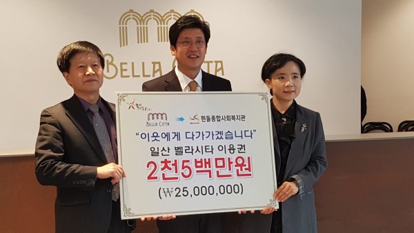 지난 12월 27일(화) 일산 벨라시타에서 고양시흰돌종합사회복지관에 2,500만원의 이용권을 후원해 주셨습니다.