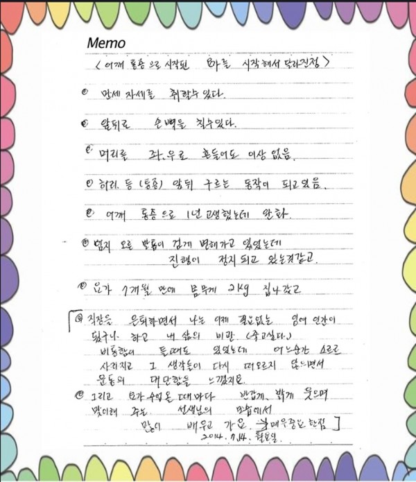 손편지로 요가 강사님에게 감동을 준 사연을 소개합니다.