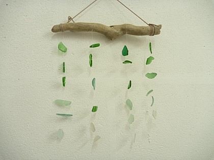 “버려진 바다 유리를 활용하여 모빌을 만들어 걸어두니