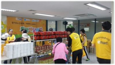신세계 이마트의 후원으로 진행되는 '희망배달마차' 사업으로 많은 분들이 물품을