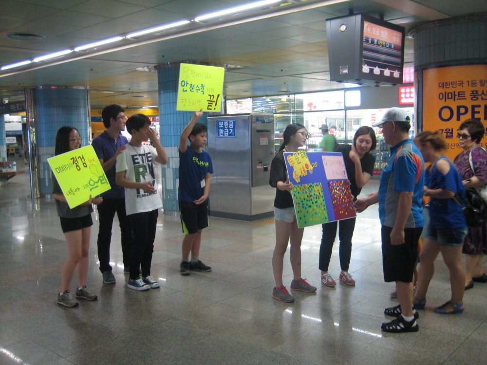 4일차에는 백석역에 나가 '우리 마을 안전문화 만들기' 캠페인 진행과
