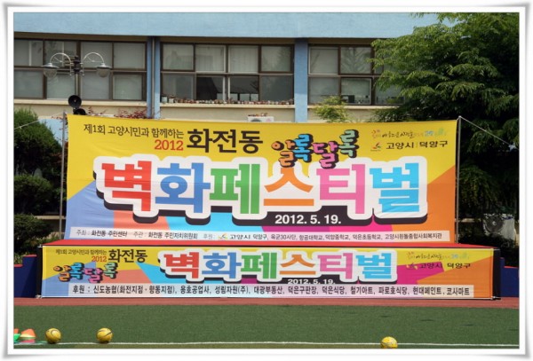 덕양중학교 교내 운동장에서 화전동주민자치위원회의 주관 가운데 화전권역 내 다양한 기관(고양시흰돌종합사회복지관 화전권역거점센터, 적십자봉사회등 직능단체)이 함께한 가운데 지역의 큰 축제가 열렸습니다. 바로 '화전동 벽화페스티벌' !!