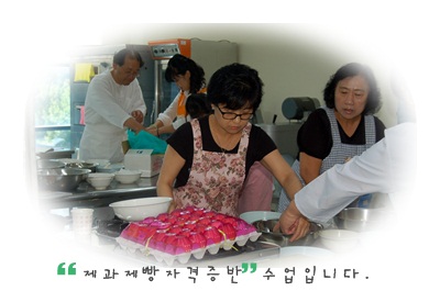 교육문화-제과제빵 자격증반 수강생들의 모습입니다