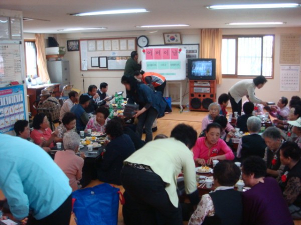정(情)서비스를 실시하였습니다. 씨뿌리는교회 자원봉사자분들과 어버이은혜 노래를