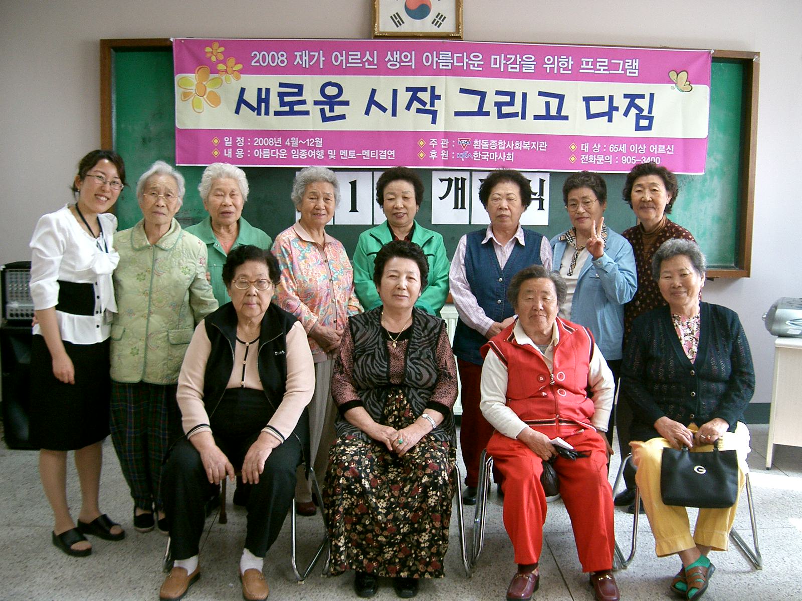 \생의 아름다운 마감을 위한 프로그램 \ 새로운 시작 & 다짐은 한국마사회 후원으로 2008년 새롭게 도입된 프로그램으로서 1:1 개별상담을 통해 각 기수별로 12명씩 선정하여 4월(1기생), 9월(2기생) 개강식을 시작으로 프로그램을 실시 하였다.