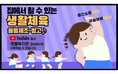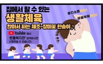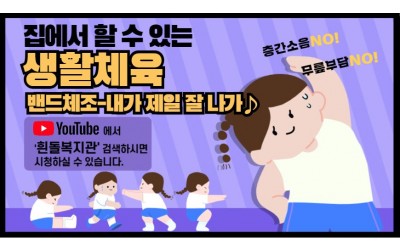 안녕하세요! 흰돌복지관 '흰돌TV' 입니다.코로나 19로 확찐살 많이 걱정되시죠?오늘부터 <1일 1생활체육>으로 뱃살 안녕~오늘은 신나는 스텝과 함…