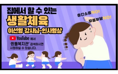 본 기관에서 장애인 동아리 '가치이룸' 생활체육 강사님으로 활동하시는 이선영 강사님입니다.코로나 19로 복지관이 휴관하게 되면서 복지관 이용자분들이 체육활동을 못하게 되…