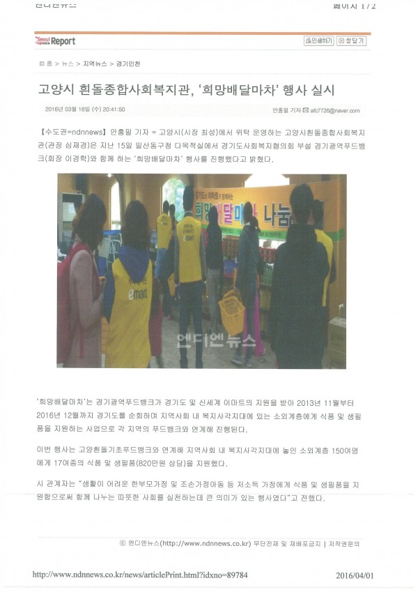 <엔디엔뉴스 2016.03.16> 희망배달마차 행사