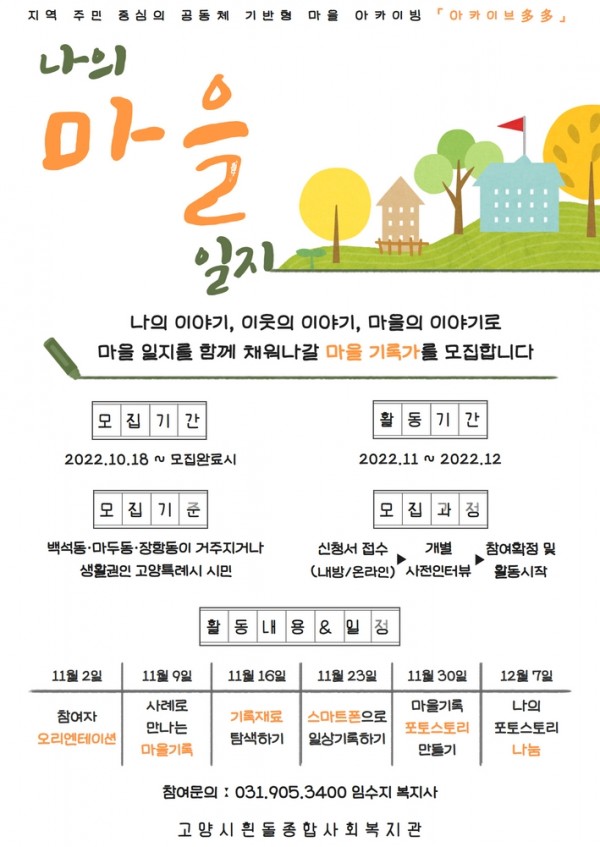 마을 안 나의 일상을 기록하고 나누는 '마을 기록가'를 모집합니다