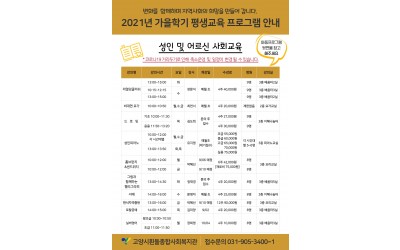 코로나19로 인해 축소운영 및 일정이 각 강의마다 다름을 양해 부탁드리며세부사항 및 궁금점이 있을 경우 복지관으로 문의 주시기 바랍니다. 사회교육문화 담당자 이미정 031-905-3400