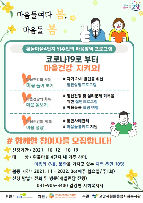 "코로나 19로 부터 마음 건강을 지켜요!"