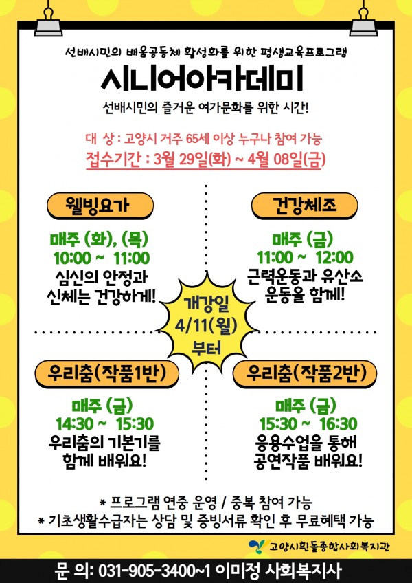고양시 거주 65세 이상 누구나 참여가능합니다. ^^
