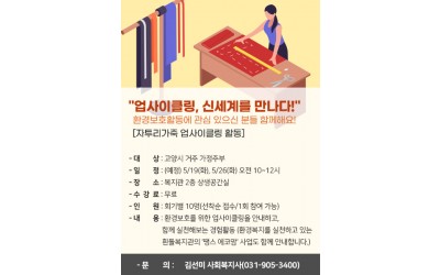 [자투리가죽 업사이클링 활동]- 대 상: 고양시 거주 가정주부- 일 정: (예정) 5/19(화), 5/26(화) 오전 10~12시- 장 소: 복지관 2층 상생공간실- 수강료: 무료- 인 원: 회기별 10명(선착순 접수/1회 참여 가능)- 내  …