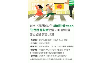 모집대상 : 고양시 내 중학교(1~3학년) 청소년 12명모집기간 : 2020년 3월 중활동기간 : 2020년 3월 ~ 11월 *월 1회 이상 활동, 연중진행진행내용 : 아동권리교육, 소모임 및 토론활동, 우리동네 통…