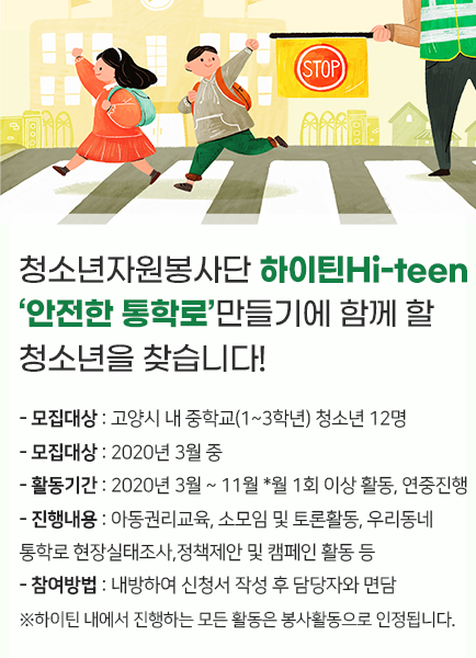 모집대상 : 고양시 내 중학교(1~3학년) 청소년 12명