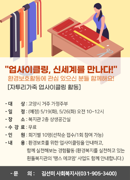 - 내   용: 환경보호를 위한 업사이클링을 안내하고, 함께 실천해보는 경험활동