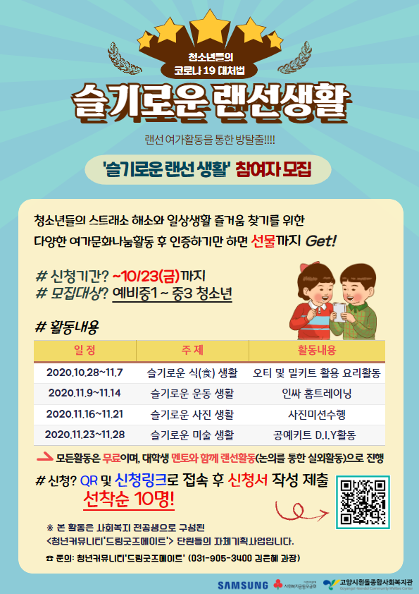 청소년들의 슬기로운 랜선생활 참여자 모집!!