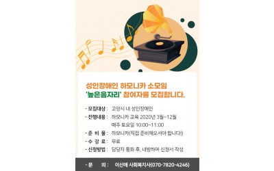 - 모집대상 : 고양시 내 성인장애인 - 진행내용 : 하모니카 교육 2020년 3월~12월 &nb…