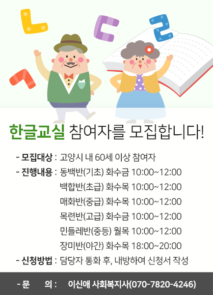 한글교실 참여자를 모집합니다!