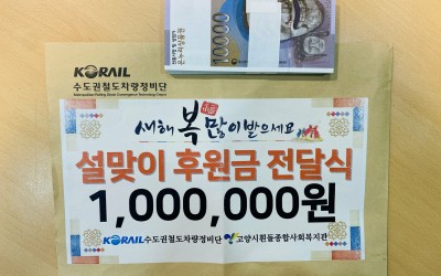한국철도공사 수도권철도차량정비단에서 온누리상품권 100만 원을 후원해 주셨습니다. 후원해 주신 온누리상품권은 명절 행사에 필요한 물품(선물, 떡, 과일, 식재료…