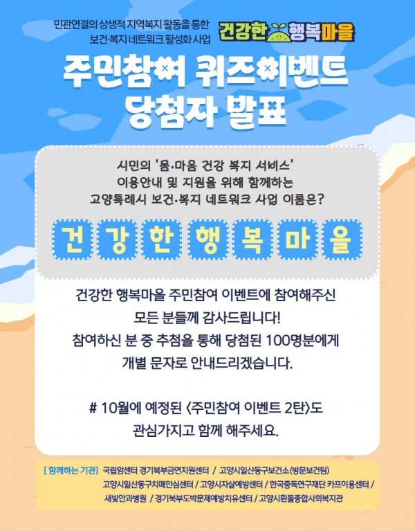 건강한 행복마을 주민참여이벤트 당첨자 안내